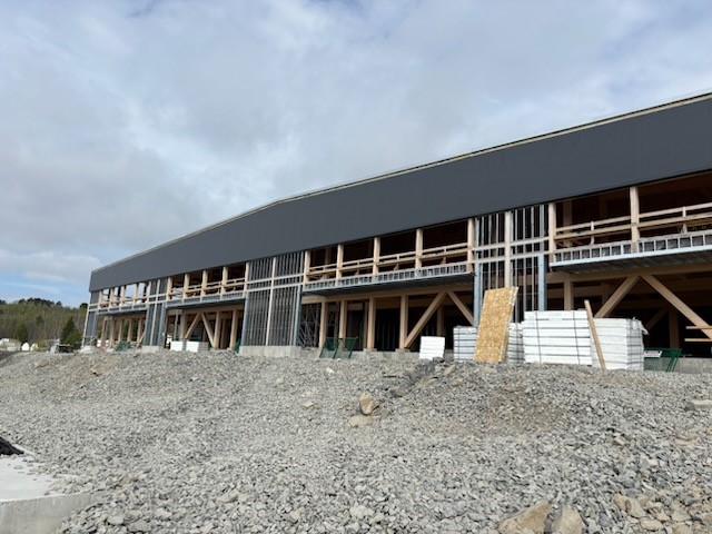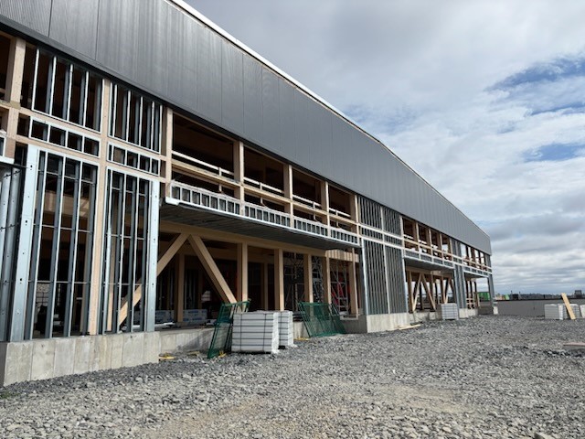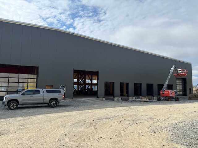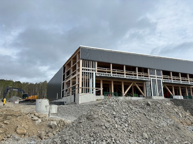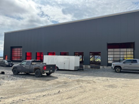 Insulated metal panels on the exterior of a new industrial building in Sudbury, Ontario. The panels are 8″ Isowall EPS in slate grey microrib embossed exterior and smooth imperial white interior.